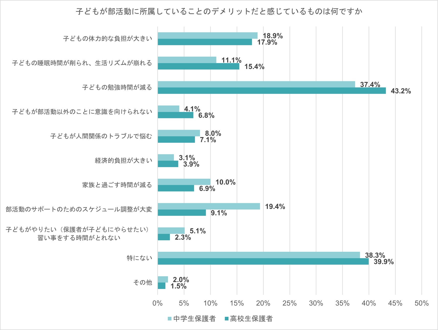 - 部活動のデメリットは「特にない」が最多 「勉強時間が減る」ことを懸念する保護者も4割弱