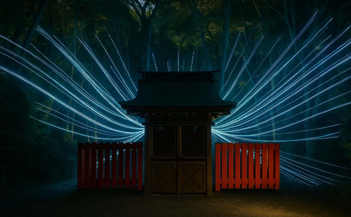 さらに、植物園の誕生以前からこの地に鎮座する半木神社では、光ファイバーを用いたインスタレーションを期間限定で実施予定です。無数の光の糸が境内を包み込み、歩くごとに異なる表情を見せる幻想的な光景が広がり、細やかな光が木々や参道に降りそそぎ、まるで星の川を渡るような体験をお楽しみいただけます。古社の持つ静謐な力と現代アートの融合が、ここでしか味わえない神秘的な夜を生み出します。
