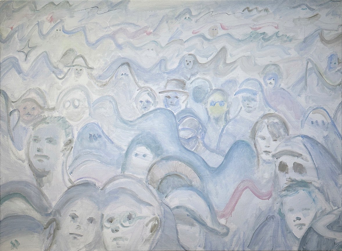本展では、人が寝そべっている身体の曲線に自然の雄大なフォルムを重ねながら描いた「漂う島」や、音楽フェスで揺れ動く群衆の熱気を描いた「留まる波、動く山」など、人やモノの存在の揺らぎを表現した作品全15点を展示します。