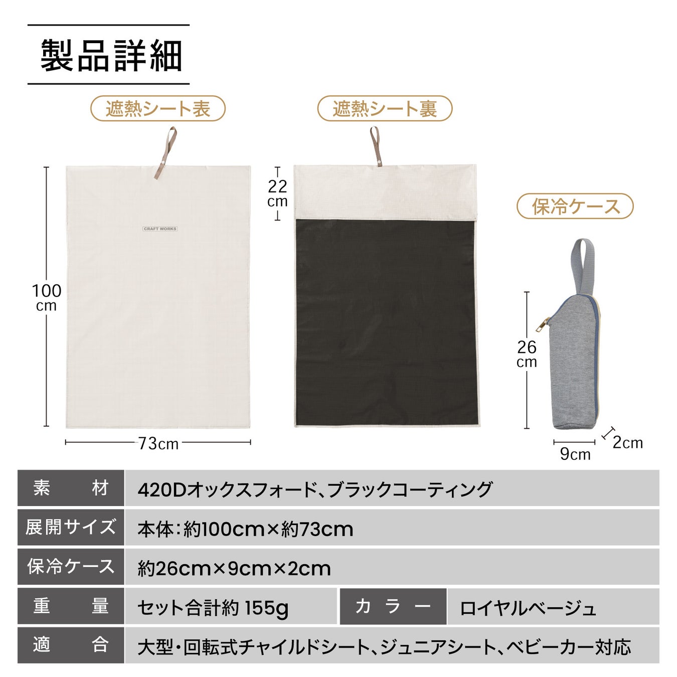 本製品は、高級日傘などに採用される「ブラックコーティング」を裏面に採用。熱の元となる赤外線をその場で吸収・遮断する「壁」の役割を果たします。チャイルドシートを徹底的に熱から守り抜きます。