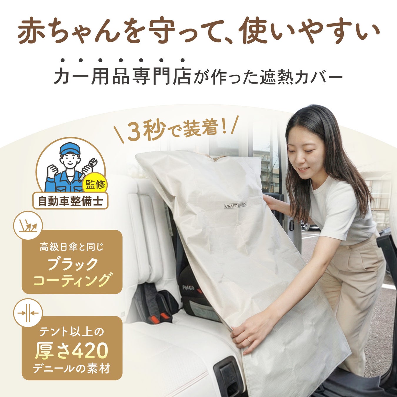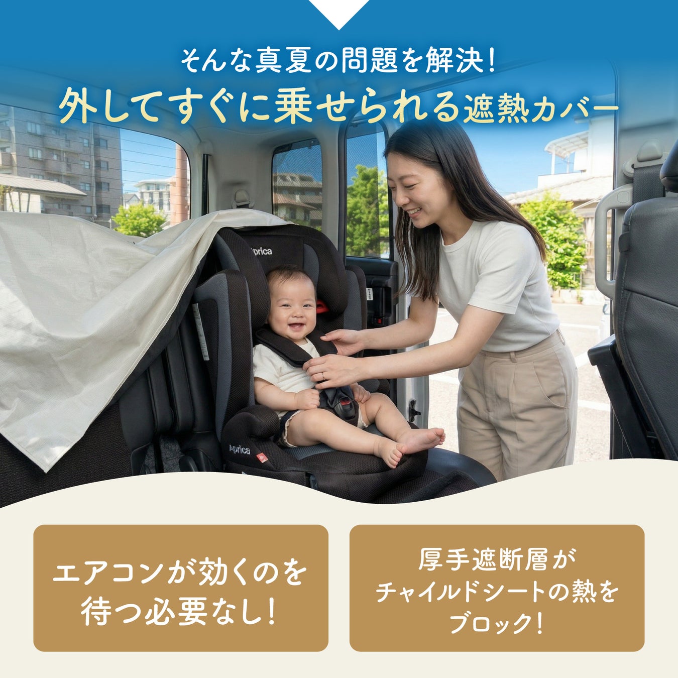 【赤ちゃんを守る、夏の新商品】熱くなるチャイルドシートに装着する「チャイルドシート遮熱カバー」を発売開始。カー用品専門店が開発。3秒で装着でき、真夏のスムーズな乗車をサポートする遮熱性能を実現。