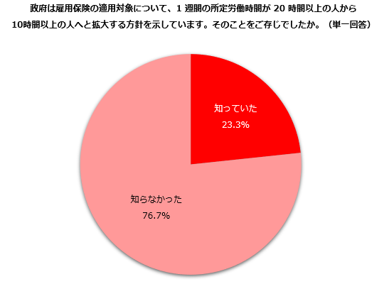 1.雇用保険の適用対象を10時間以上へ拡大すると「知らなかった」76.7%