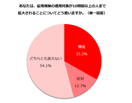 雇用保険の適用対象を10時間以上へ拡大:「賛成」が「反対」の約3倍/「どちらとも言えない」54.1%