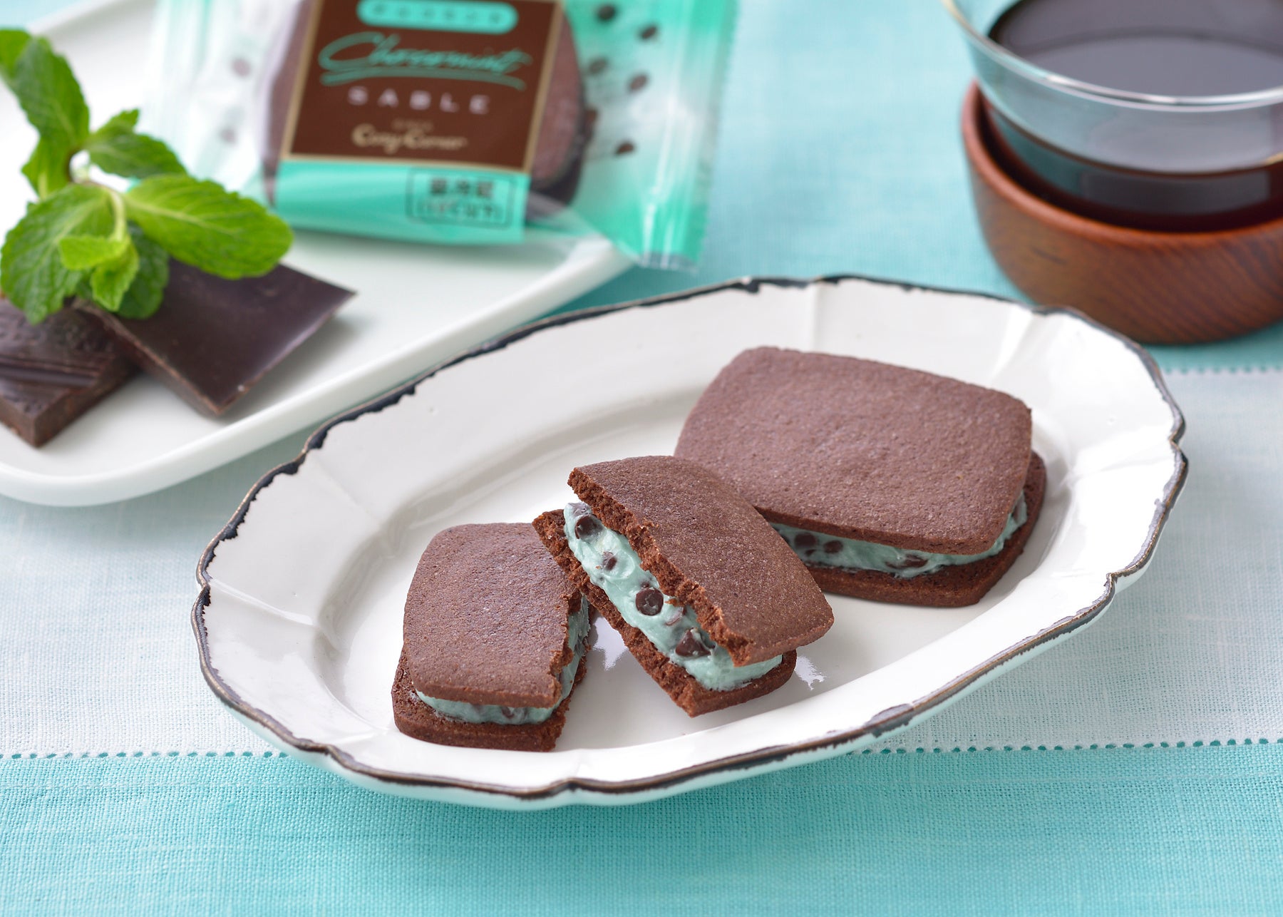 「チョコミントサブレ」は、チョコサブレにもミントオイルをブレンドして、最初から最後の一口まで、スーッとした爽快感をお楽しみいただけます。