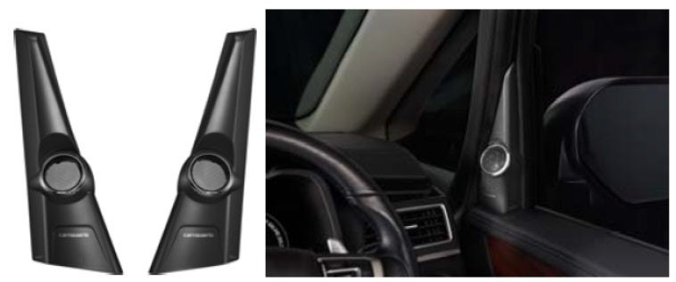 本取付キットは、クロームメッキのリングが象徴的にあしらわれた、車室内に溶け込む高品位なデザインを採用しており、ドアミラー裏のパネル部にカロッツェリアの適合トゥイーターをスッキリと取り付けることができます。専用設計ならではのスムーズな高域再生による最適な音場を実現します。