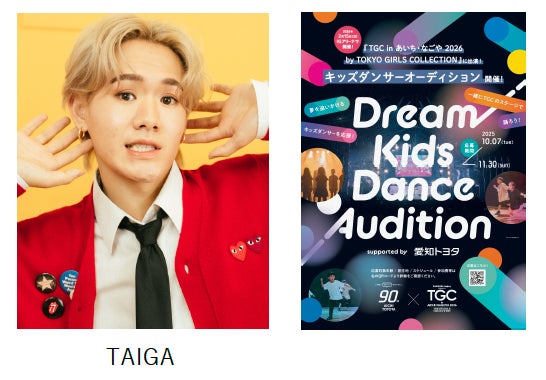 合格者が『TGC in あいち・なごや 2026』で披露するパフォーマンスの振付を手がけるのは、TikTokで「タイガの振り付け」としてキャッチーなダンスから本格的な振付までを発信し、2022年には「ロマンスの神様」でTikTok上半期トレンド大賞を受賞するなど、振付師としての確かなスキルと、クリエイターとしての発信力という二面性を持ち、活動の幅を広げ続ける TAIGA に決定!さらに、楽曲は愛知トヨタサポーターを務める岩田剛典の人気曲に!自身が出演する愛知トヨタのテレビCMで使用されている楽曲で、想いのこもった歌詞が話題を呼んだ「Paradise」、そして2025年8⽉6⽇(⽔)のリリース以降、前作を超える反響を⾒せている「TORICO」の2曲がステージを彩ります。 TAIGAの表現力と岩田剛典の音楽が融合する、ここでしか見られないスペシャルステージ。次世代を担う子どもたちが主役となるこのオーディションに、ぜひご注目ください!