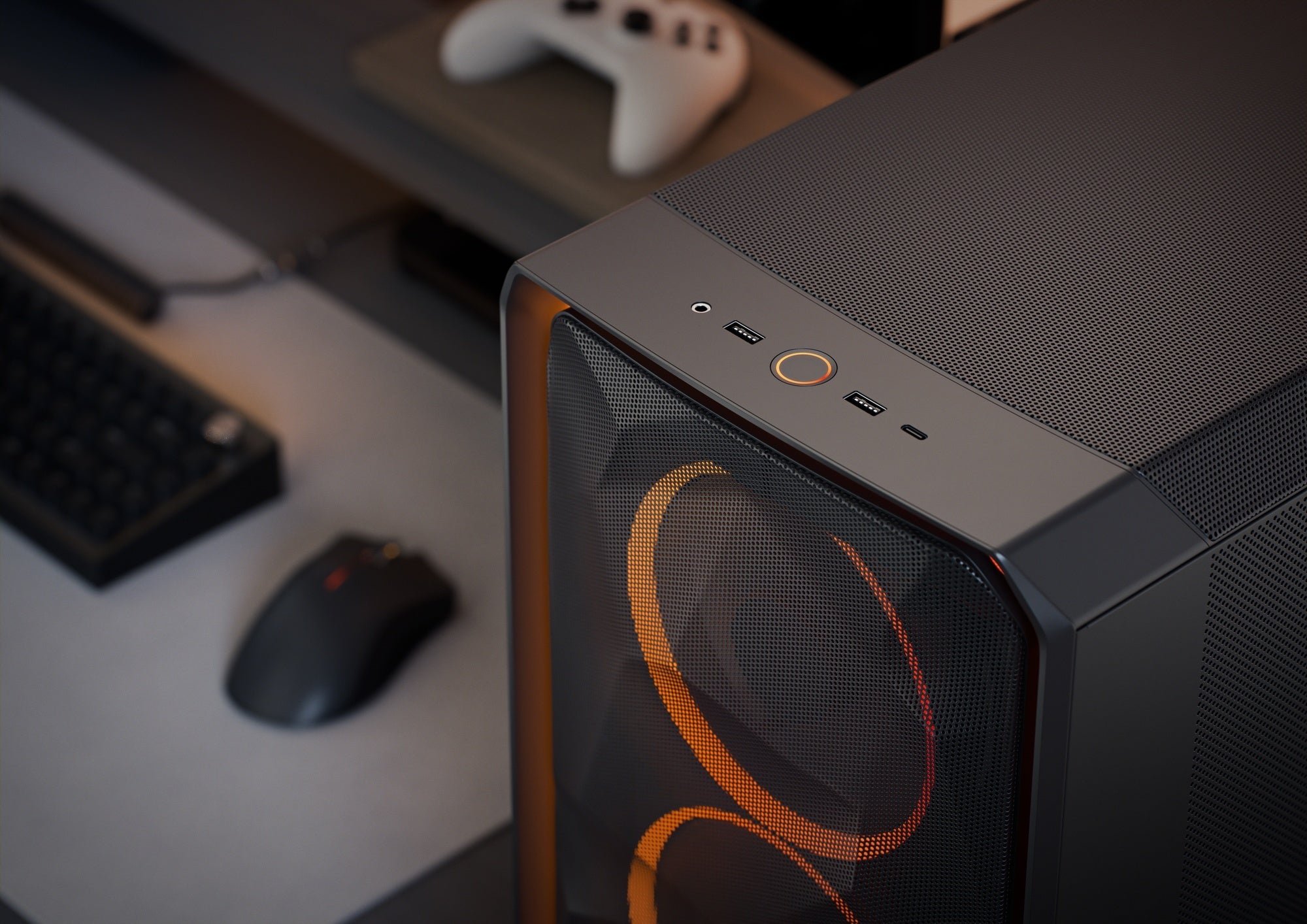 「RGB TG」モデルは、強化ガラスサイドパネルに加え、アドレサブル Gen 2 RGB対応のMomentum RGBファンを3基標準搭載。ケース正面と内部をライティングで魅せることができます。さらに上位の「Ambience Pro RGB TG」モデルは、標準搭載する3基のアドレサブルRGBファンに加え、ケース正面と側面を美しく照らすアンビエントライティングに対応。アドレサブルRGBハブ「Adjust Pro Hub」も装備しており、デスクトップ全体を魅せるのに役立ちます。