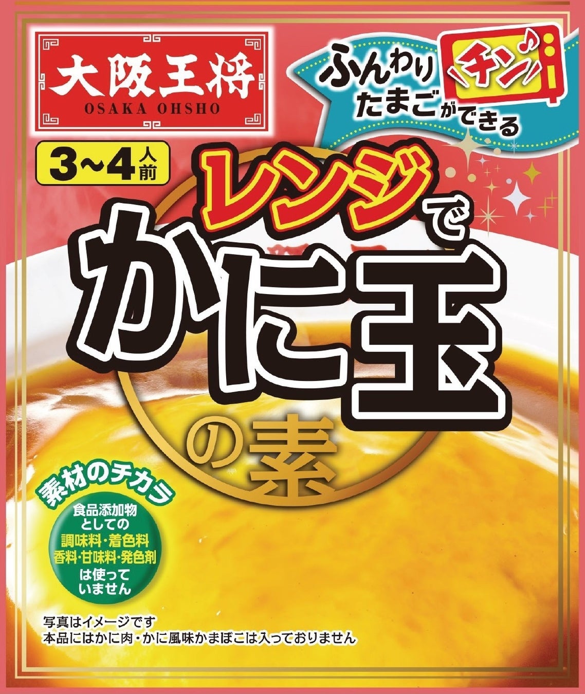 夏場には火を使わずに、レンジ調理だけで済む商品の需要が高まっています。そこで、大阪王将の常温調味料の中でも根強い人気の『かに玉の素』をレンジ調理品へリニューアルいたしました。卵に付属の調味料を混ぜ、レンジで加熱するだけで誰でも簡単に、お店のようなふんわりたまごが作れます。餡もレンジ調理で難しいとろみの調整が不要に。フライパンいらずで感動のかに玉が完成します。今後、大阪王将 中華調味料の素は、レンジでできるシリーズとしてリニューアルを進めてまいります。