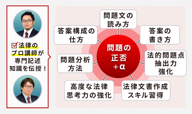 法律分野は司法試験講師が解説・添削するので正確な答案表現方法が身につく