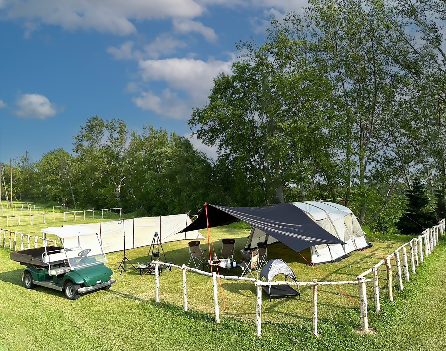 広い敷地でも、重い荷物はゴルフカートで移動。 移動や荷物運びの負担を軽減し、キャンプ初心者やファミリーでも安心。愛犬との移動もスムーズで、快適なキャンプ体験をサポートします。