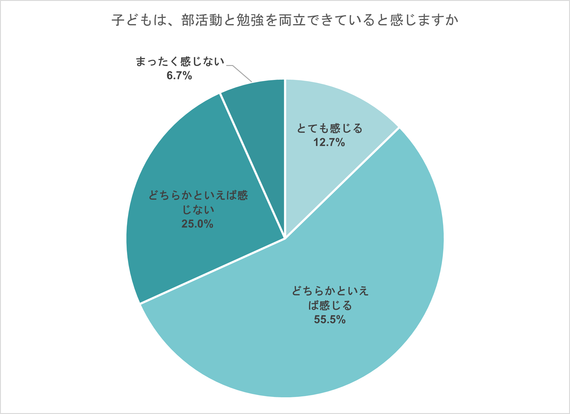 多くの保護者が、子どもが部活動と勉強を両立できていると感じており、両立しようとする姿勢や努力を評価しているようだ。