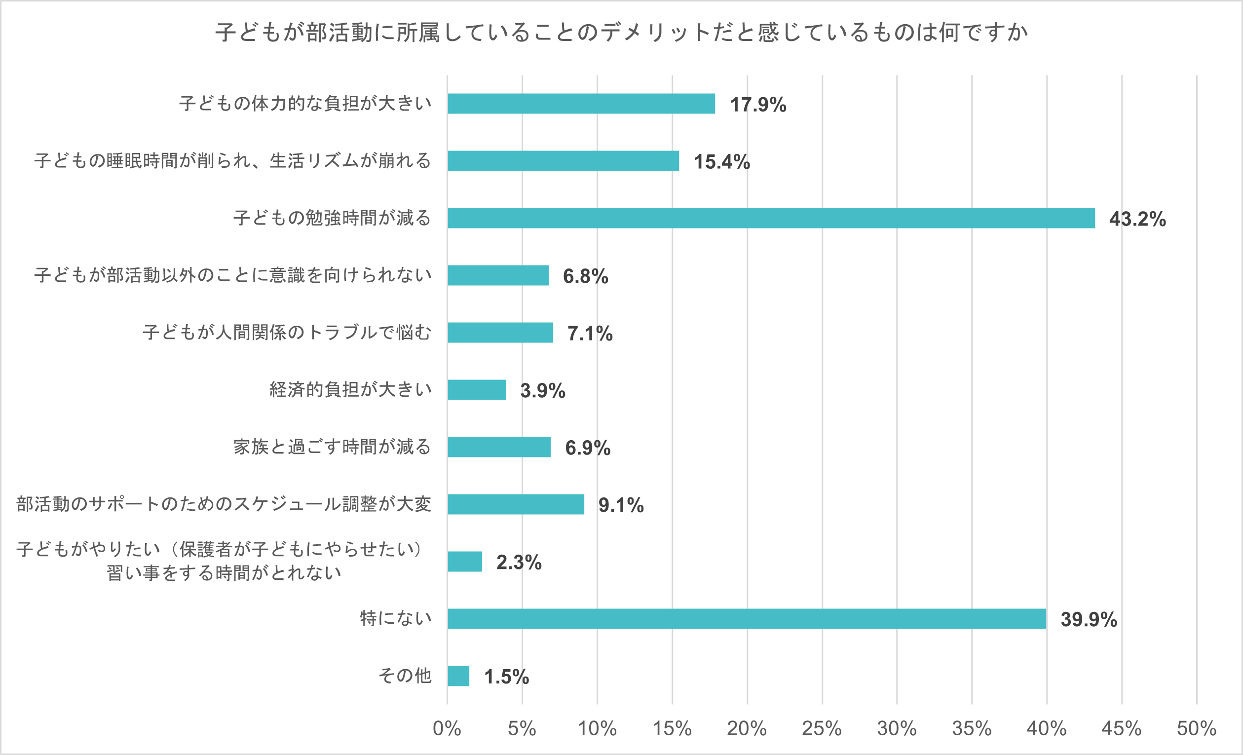 保護者が感じている、子どもが部活動に所属していることのデメリットを保護者に聞いた。