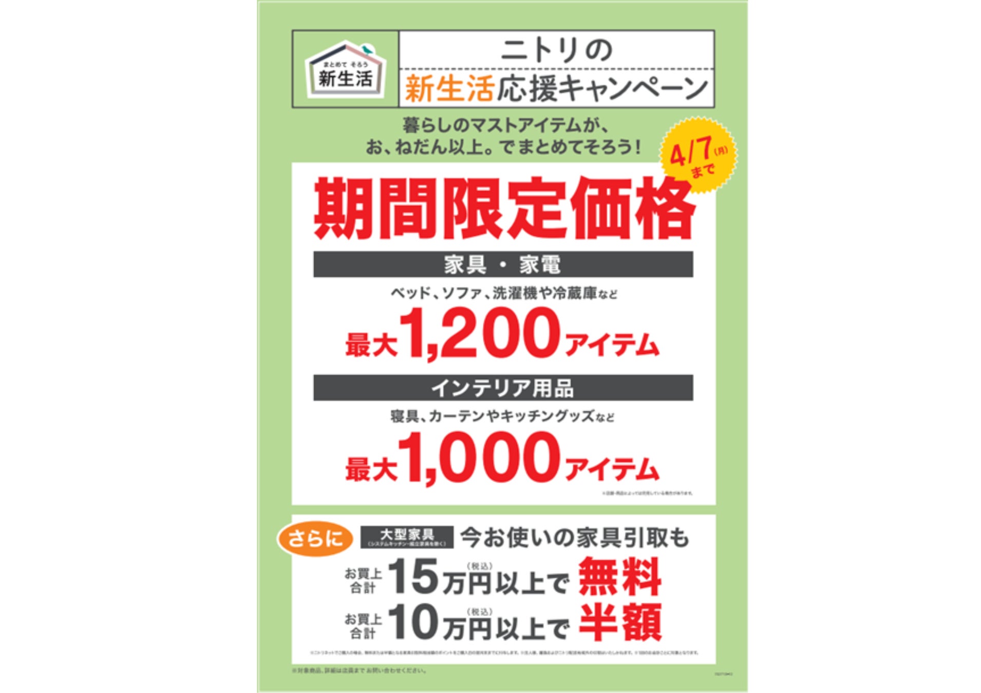 ぜひ、お得な「ニトリの新生活応援キャンペーン」をお見逃しなく。