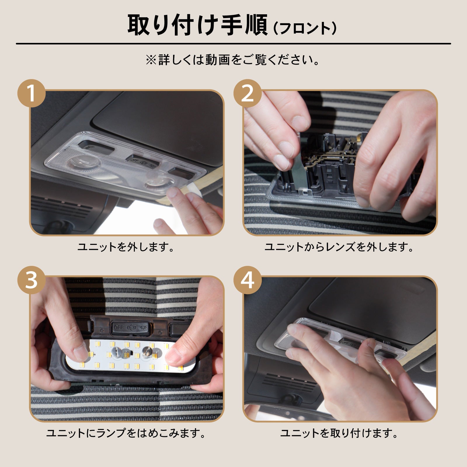 純正LEDルームランプ車は非対応。