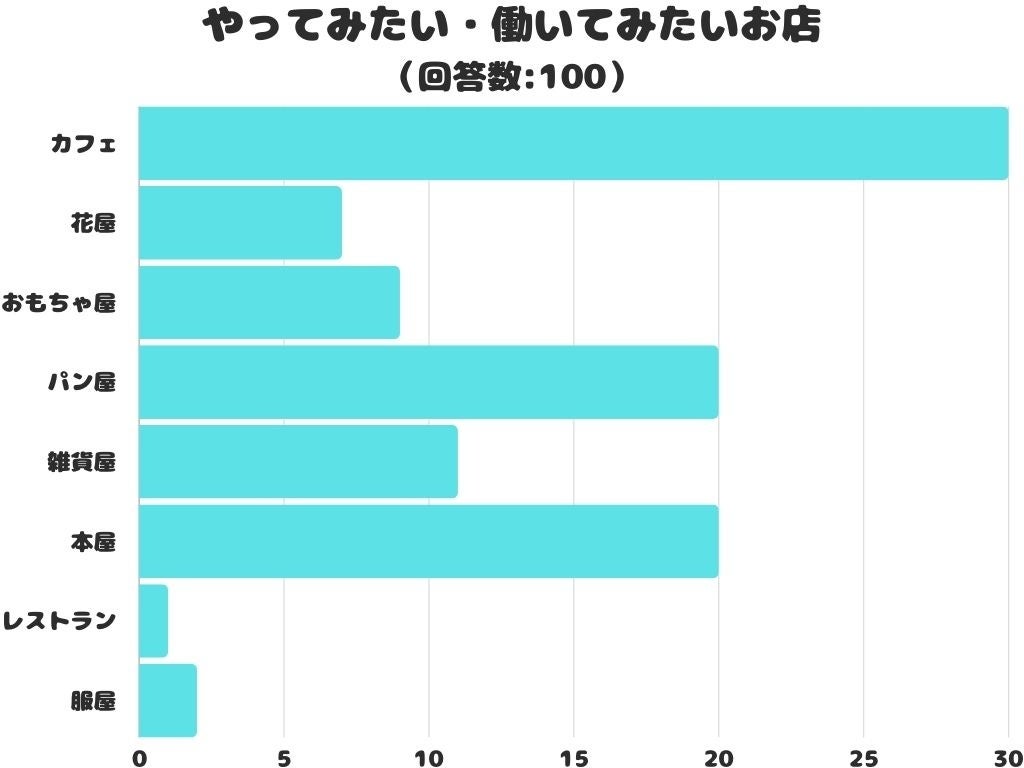 やってみたい・働いてみたいお店をアンケートにて調査したところ、1位は「カフェ」でした。
