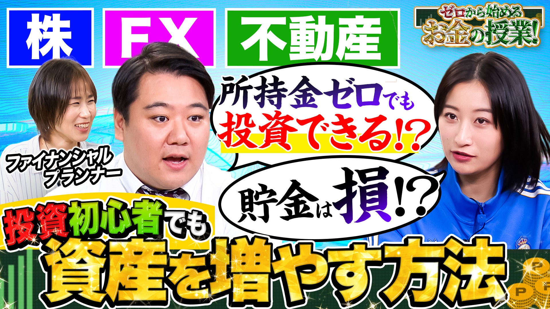 初回企画「ゼロから始めるお金の授業」では、お笑いコンビ・ラランドのニシダ氏、グラビアアイドルの榎原依那氏、知性派ギャルタレントの湯上響花氏をゲストに迎え、出演者それぞれが持つお金や投資に対するイメージや疑問を起点に、ファイナンシャルプランナーの前田菜緒氏の解説を交えながら、投資に関するいろはをテーマに、出演者とともに理解を深めていく企画となっております。