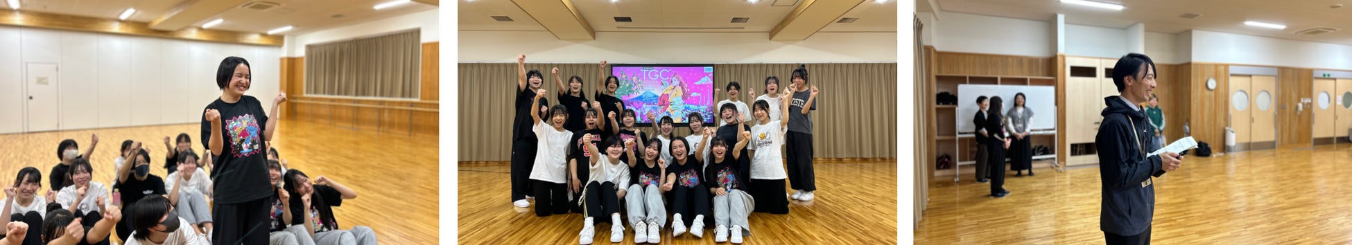 さらに、「W TOKYO×LDH JAPAN 地方創生プロジェクト(※)」の一環として、地元・常葉大学附属常葉中学校・高等学校 ダンス部とのスペシャルコラボレーションも決定し、本日2025年11月14日(金)に常葉大学附属常葉中学校・高等学校にて、ダンス部生徒たちにサプライズ発表をしました。生徒たちは今後、LDH JAPAN が運営するダンススクール「EXPG STUDIO」のインストラクターによるダンスの直接指導や、KID PHENOMENONとのリハーサルを経て、TGCしずおか当日、KID PHENOMENONとスペシャルコラボレーションパフォーマンスを披露する予定です。