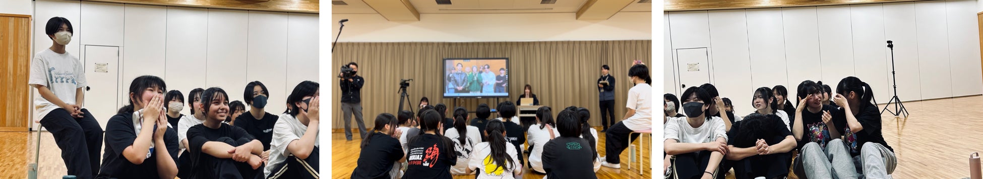 まるでダンス部生徒たちへサプライズのお知らせを届けにきたかような澄んだ風が優しく吹く放課後、急遽いつもの練習場所とは違う多目的ホールに集められたダンス部生徒たち。いつもとは違う緊張感に包まれる中、ダンス部顧問の安倍先生より「本日はある重大な発表があり皆さんに集まっていただきました。なんと来年2026年1月に静岡県で開催される東京ガールズコレクションに皆さんに出演していただくことが決定ました!」と告げられ、涙する生徒の姿が。想像以上のリアクションに、「ちょっと、泣いちゃった…!」と安倍先生も驚きを隠せない様子の中、続けてKID PHENOMENONからのサプライズビデオメッセージが披露されると、「ちょっと待って!推しです!」と歓喜の声が上がりました。