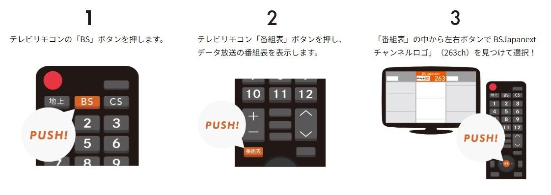 ③「番組表」の中から左右ボタンで 「BSJapanextチャンネルロゴ」(263ch)を見つけて選択