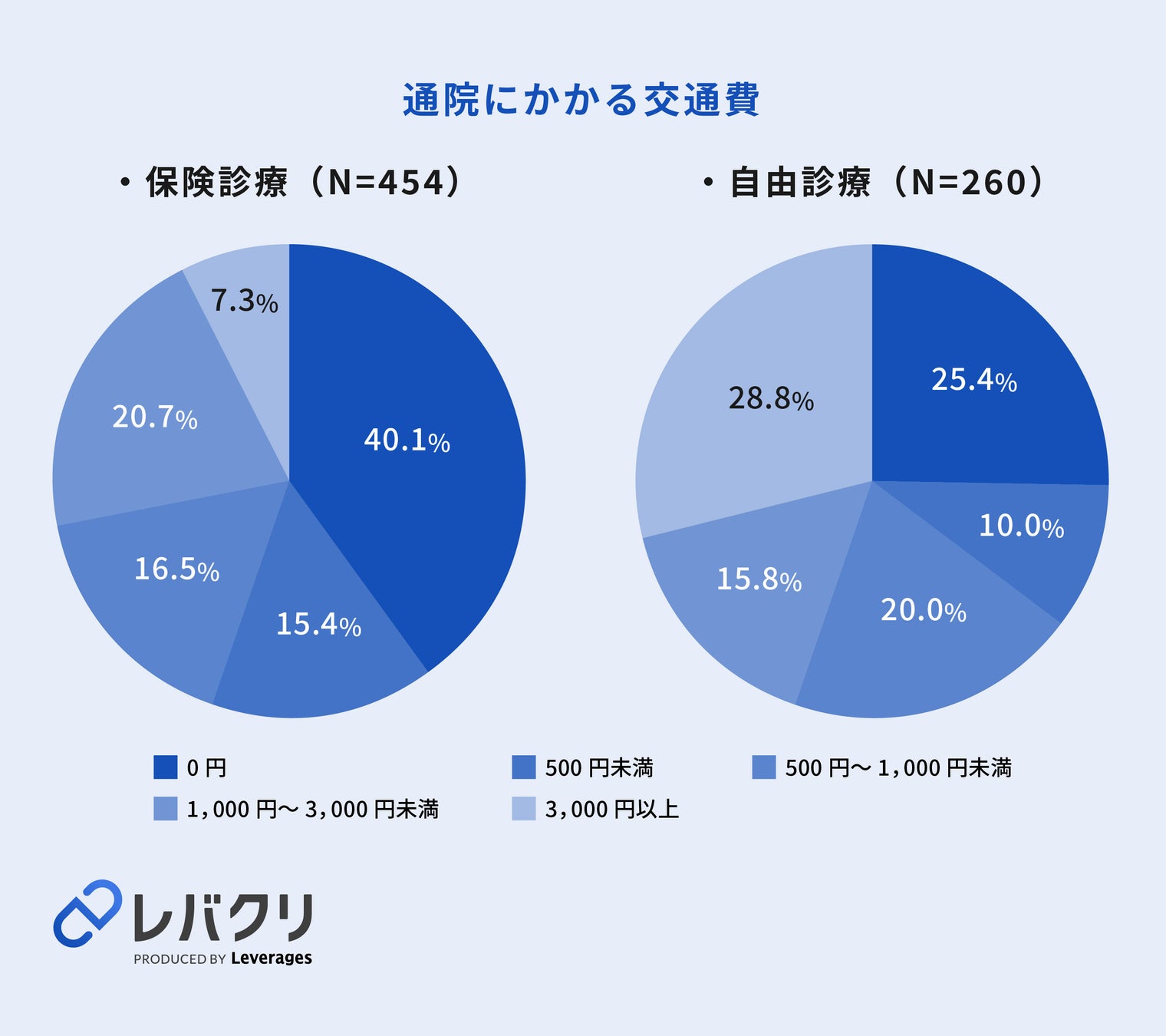 通院にかける時間は約2人1人が「1時間以上」、自由診療では交通費負担が顕著