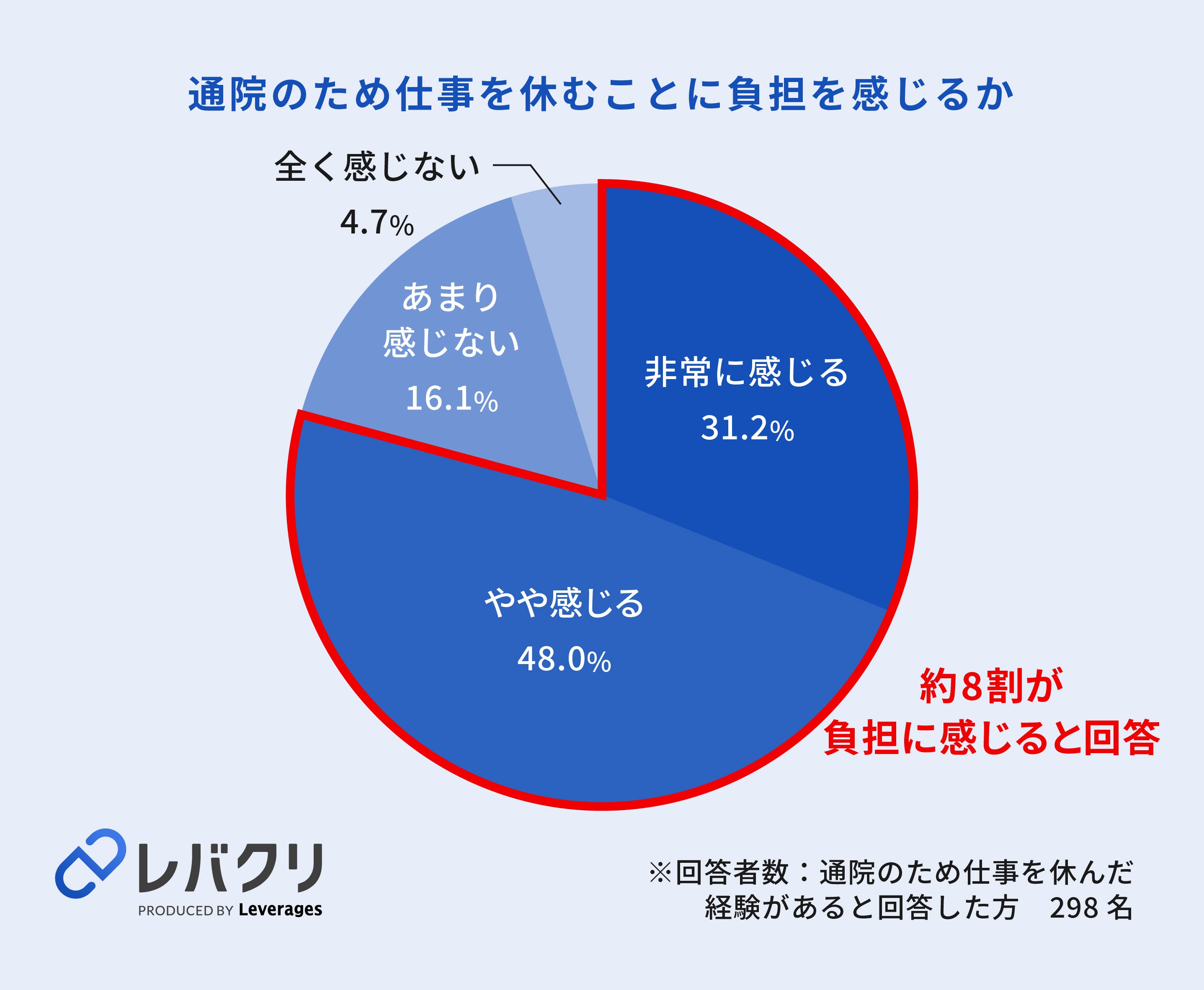 そのうち約8割が仕事を休むことに対して「非常に負担を感じる(31.2%)」「やや負担を感じる(48.0%)」と回答しました。