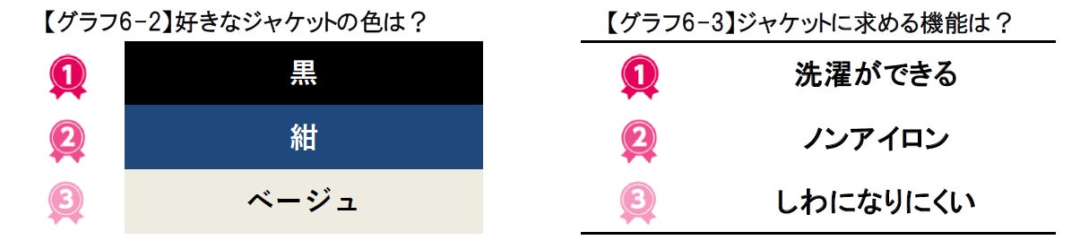 ジャケットに求める機能は、「洗濯ができる」「ノンアイロン」「しわになりにくい」でした。