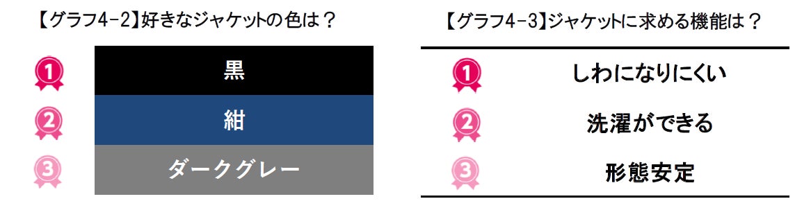 さらに、ジャケットに求める機能として「洗濯ができる」「形態安定」「しわになりにくい」など、清潔感や着心地を保つ機能を最重視している#ジャケジョです。