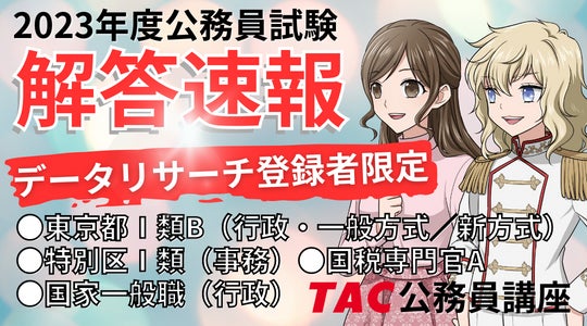 資格の学校TACは、5/13(土)に実施される2023年度公務員試験「裁判所一般職[裁判所事務官:大卒程度]採用試験」の専門記述試験・論文試験模範解答を、本試験データリサーチ登録者限定で、5/19(金)17時よりTACホームページで公開いたします。