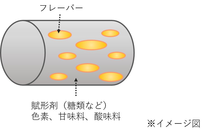 「フリス®」は、香料メーカーの高砂香料工業株式会社の登録商標です。粒が大きめで色を付けられるため、ガムやタブレットに用いられることが多いカプセル化した香料です。口の中に入った後に、カプセルに閉じ込めた香りが押し寄せることが特長で、「ス―パーポテト」では、ポテトチップスに合うように独自 開発したバター風味の「フリス®」を使用しています。