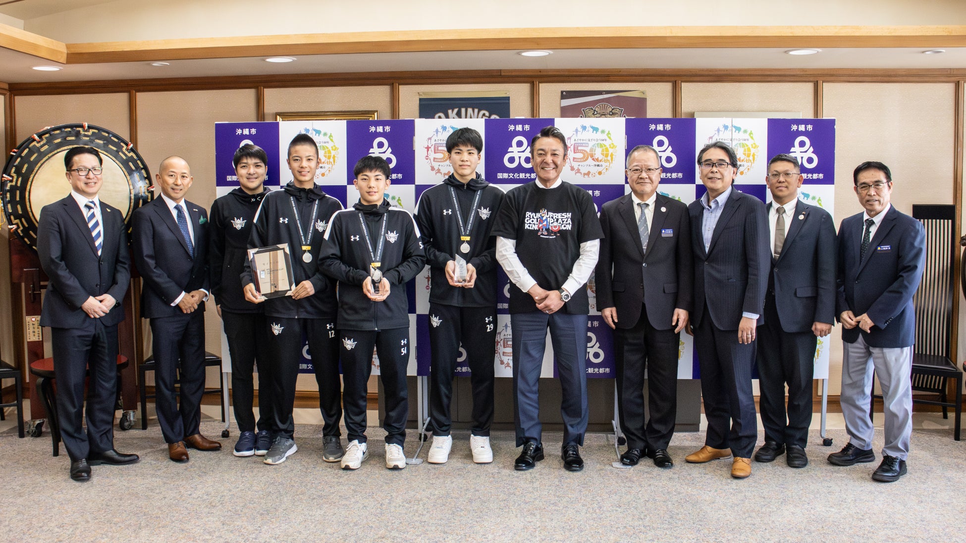 1月29日(水)に琉球ゴールデンキングスのホームタウンである沖縄市の花城市長へキングスU15が京王Jr.ウインターカップ2024-25準優勝のご報告を兼ねた表敬訪問を行いました。