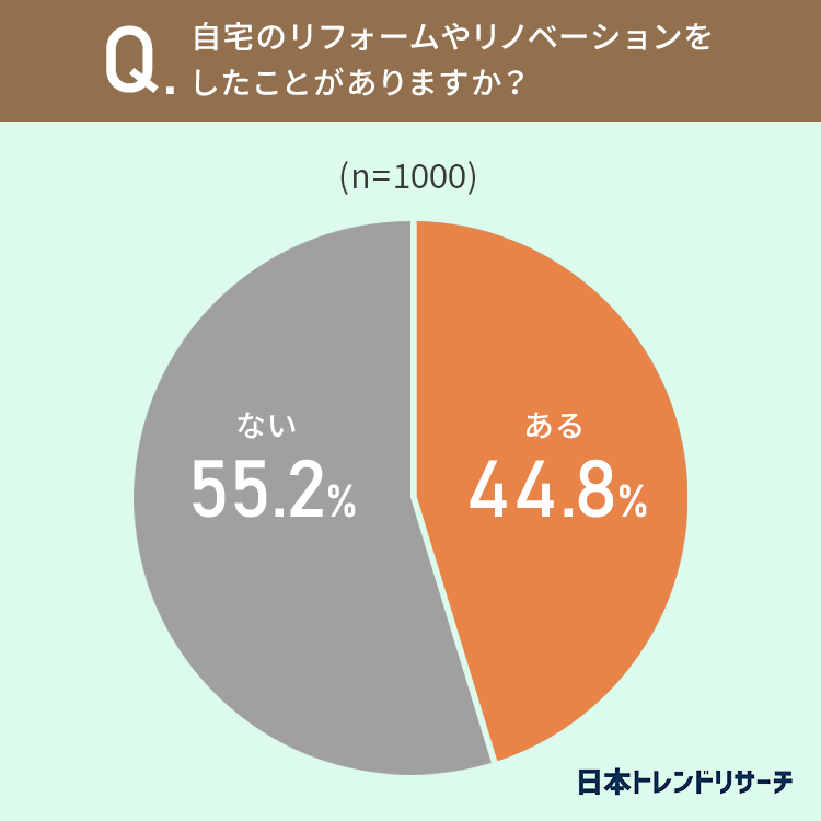 44.8%の方が、自宅のリフォームやリノベーションをしたことが「ある」と回答しています。