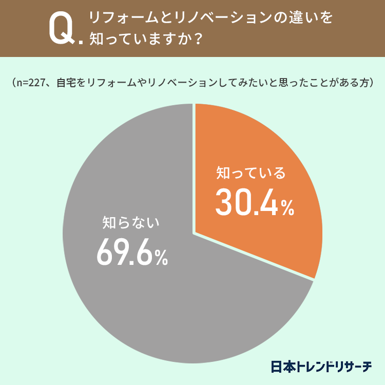 【あなたは知ってる?】69.6%が、リフォームとリノベーションの違いを「知らない」