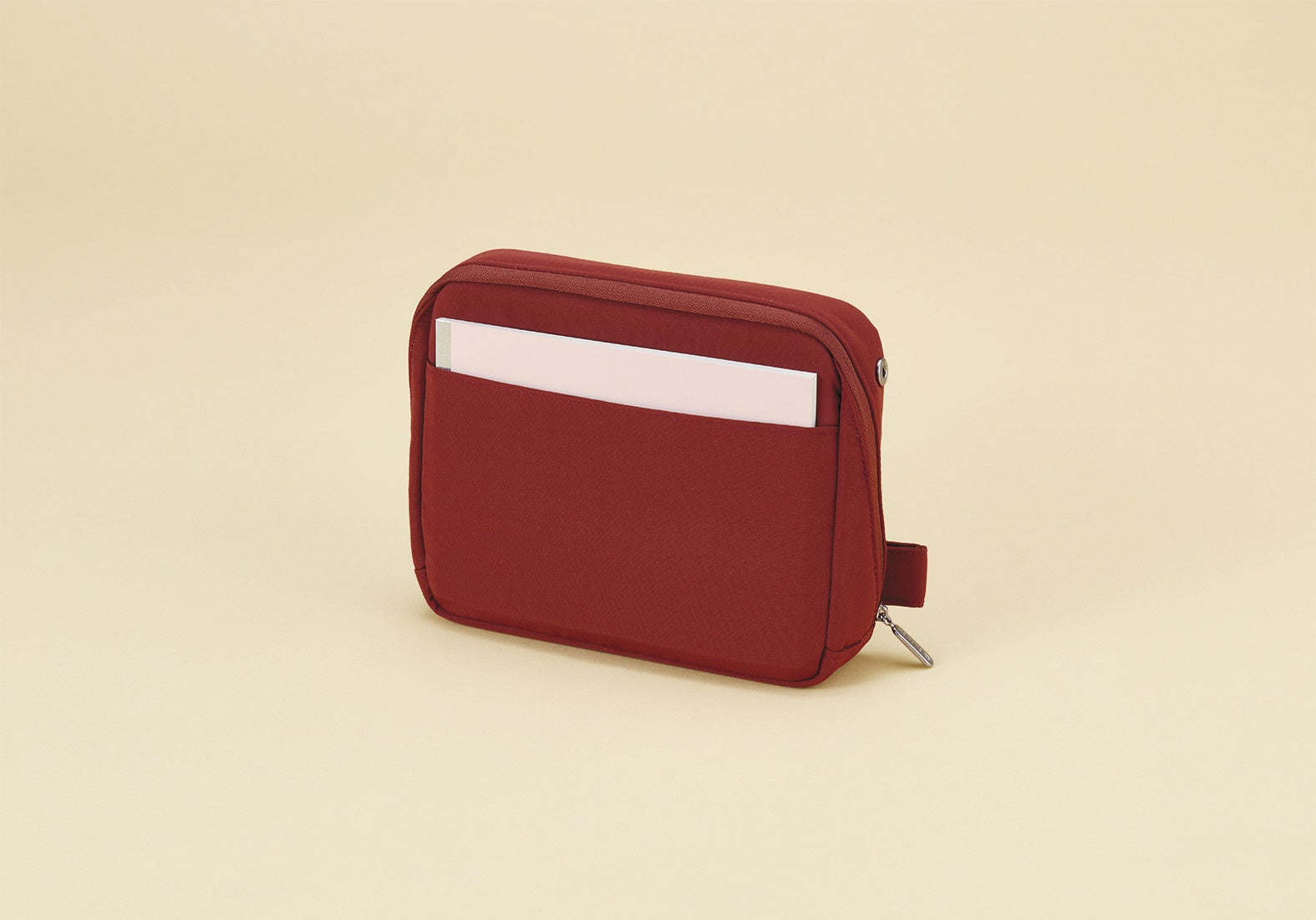 文具からガジェット類まで、仕事をする際に必要なワークツールを一つにまとめて収容できるポーチです。メイン収容スペースのほか、イヤホンや修正テープなどの小物類を収容できるインナーポケットに、ペン類が収容できるペン差しや、かさばる太いケーブル類がばらけずに収容できるマジックテープ付きのケーブルホルダーなど、ワークツールが整理整頓しやすい設計となっています。またフラップ部分はスタンド機能を備えているため、スマホを立てかけて使用することができます。ポーチは自立するため、中に収容したものがひと目でわかり、取り出しやすい形状です。カラーは2024年の新たなカラーパレット「Fair Play」から、「BRIGHT SAND」と「TARTAN RED」2色をご用意しました。