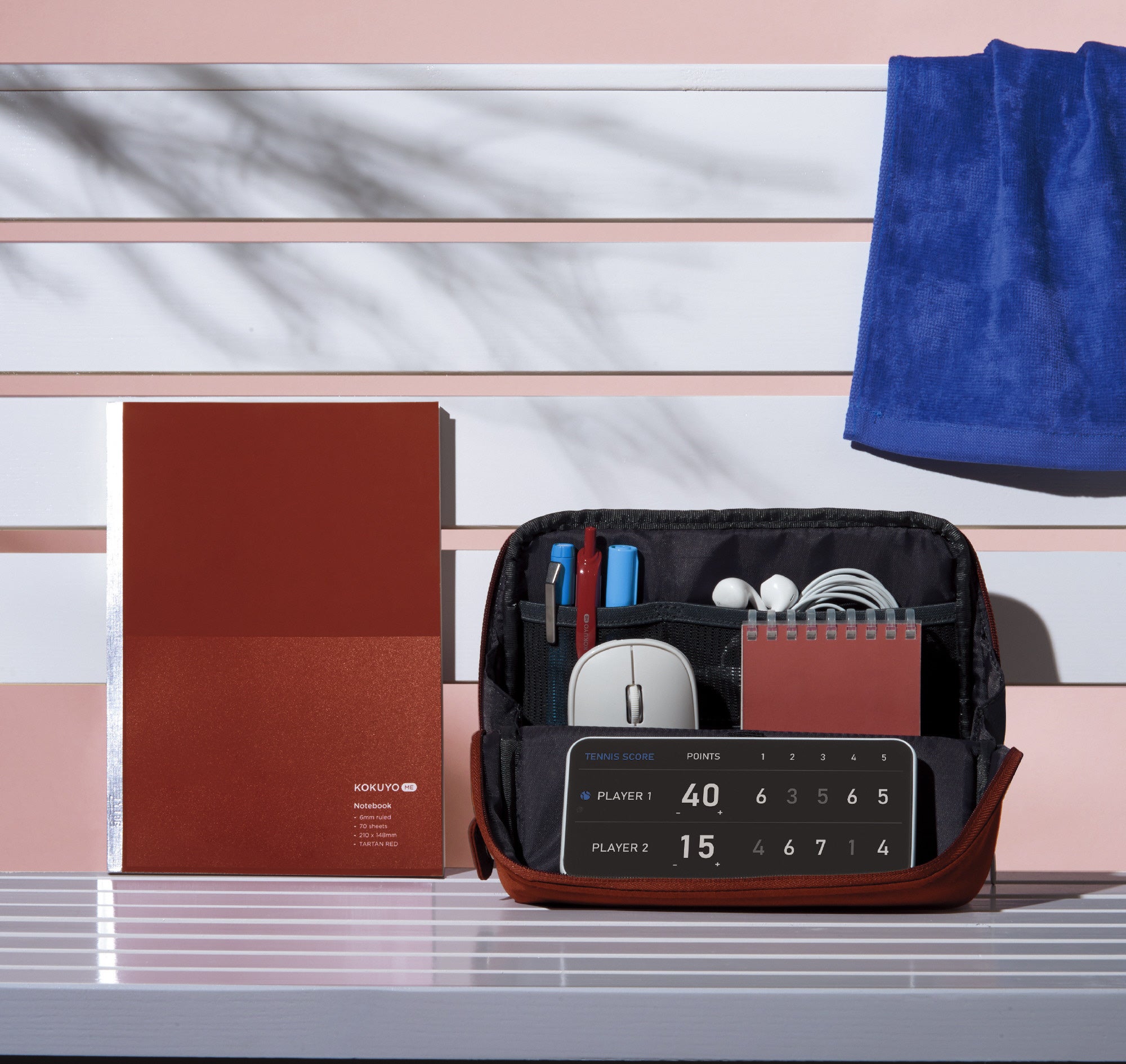「KOKUYO ME」は、「Life Accessories」をコンセプトに、文具を単なる「TOOL(道具)」としてではなく、持つ人の個性を表現する「ACCESSORY(アクセサリー)」としての価値を提供する文具シリーズです。2024年の新たなカラーパレット「Fair Play」は、外へ出たくなる活動的なポジティブマインドを後押しするようなカラーで、ファッションやインテリアに使われるトレンドカラーを意識した配色となっており、スポーティで気分がわくわくするような「POOL BLUE(プールブルー)」、「BRIGHT SAND(ブライトサンド)」、「TARTAN RED(タータンレッド)」、「TENNIS(テニス)」の4色展開です。