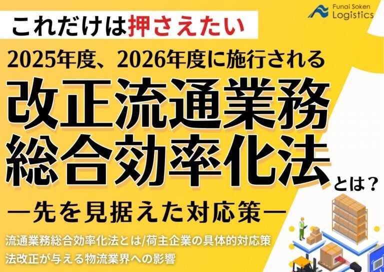日本最大級の物流コンサルティングファーム 船井総研ロジ株式会社(本社:大阪市中央区、代表:橋本直行、以下「船井総研ロジ」)は、法改正の概要や法改正による荷主企業への影響、その対策方法を解説した最新資料「2025年度、2026年度に施行される改正流通業務総合効率化法とは?―先を見据えた対応策―」を公開しました。