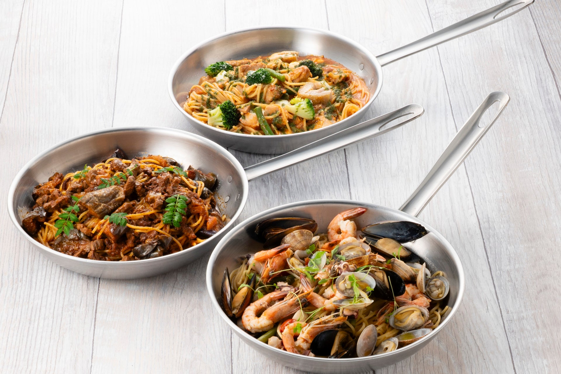 <ライブ感あふれるオープンキッチンで仕上げる出来立てパスタ>