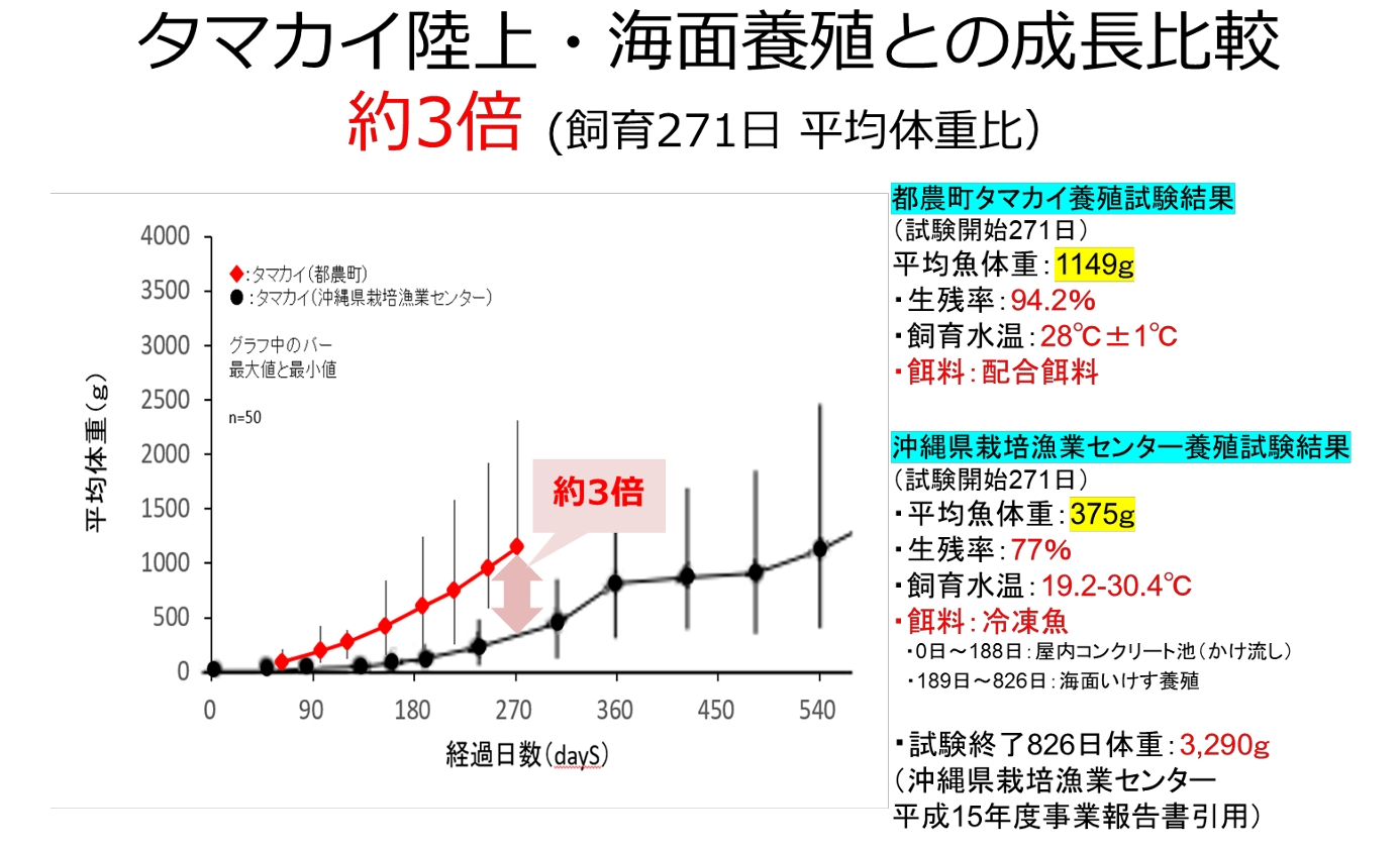 ※4「金城清昭ら(2003). タマカイの成長試験」で公表されている実績と比較して、魚体重で約3倍の高成長を記録。