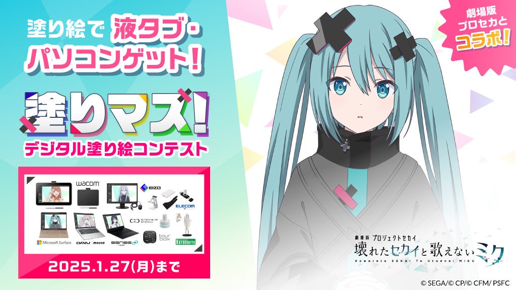 セルシスは、本日12月27日(金)より株式会社アイビスと共催する、第三十一回デジタル塗り絵コンテスト「塗りマス!」で、「劇場版プロジェクトセカイ 壊れたセカイと歌えないミク」とコラボレーションします。