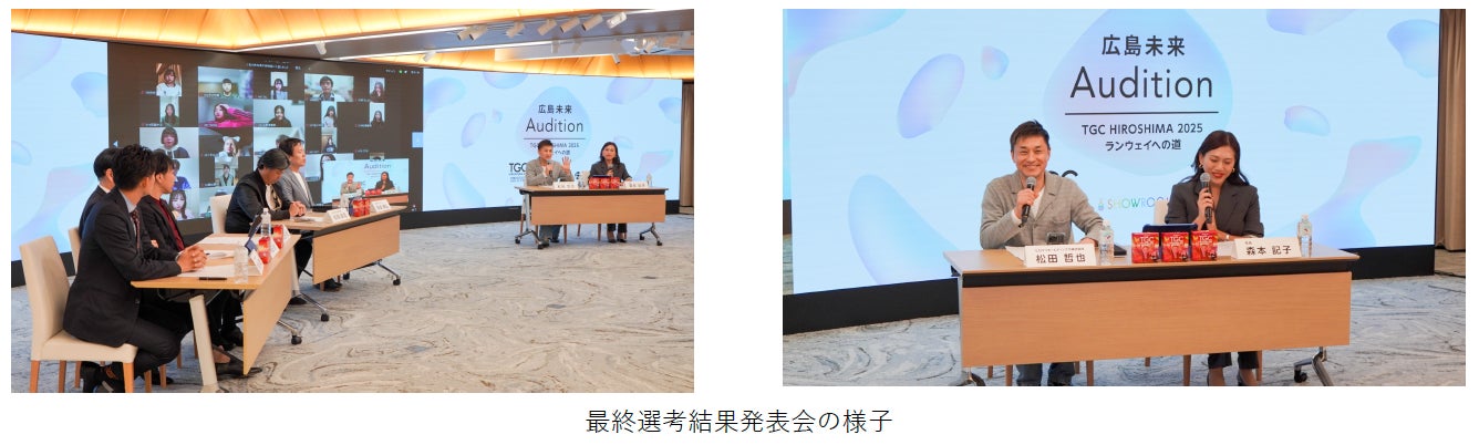 広島県で2 回⽬の開催となる今回の『TGC 広島 2025』では、憧れの舞台への夢を抱く若者を応援したいという思いから、ヒロマツホールディングス株式会社・TGC・SHOWROOMがタッグを組んで実施した『広島未来Audition〜TGC HIROSHIMA 2025 ランウェイへの道〜』の最終選考結果発表会を2025年11月16日(日)におりづるタワーにて開催しました(応募者は全員オンライン参加)。広島から全国、そして世界を目指すモデル・タレント・ライバーなどを志す、日本全国の中学生〜29歳以下(2025年12月6日時点/性別不問)までの方を対象に、400通を超える応募が集まった本オーディションでは、ひとりずつ名前が読み上げられ、広島県内に住む計5名が見事ランウェイ出演権を獲得しました。合格者に向けて、ヒロマツホールディングス株式会社 代表取締役会長兼CEO 松田哲也氏は「合格者の皆さん、本当におめでとうございます。我々も皆さんがもっと輝けるように当日まで頑張りますので、皆さんも一緒に頑張りましょう!」と熱いエールを送りました。