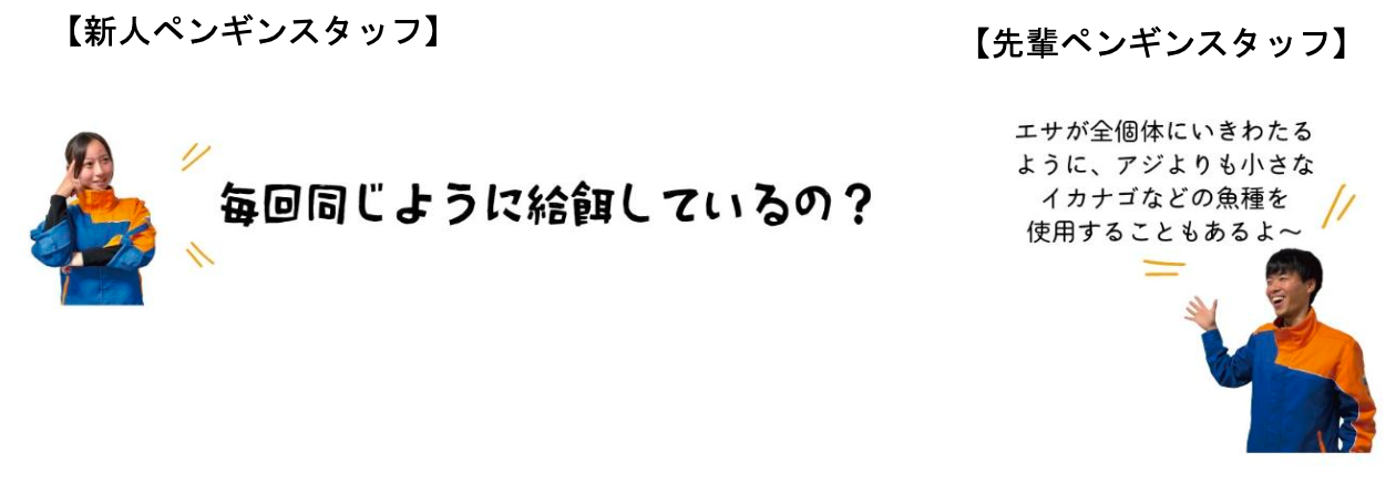 ペンギンのエサの種類や一日に与える量、個体ごとのエサの食べ方の違いなどを紹介します。