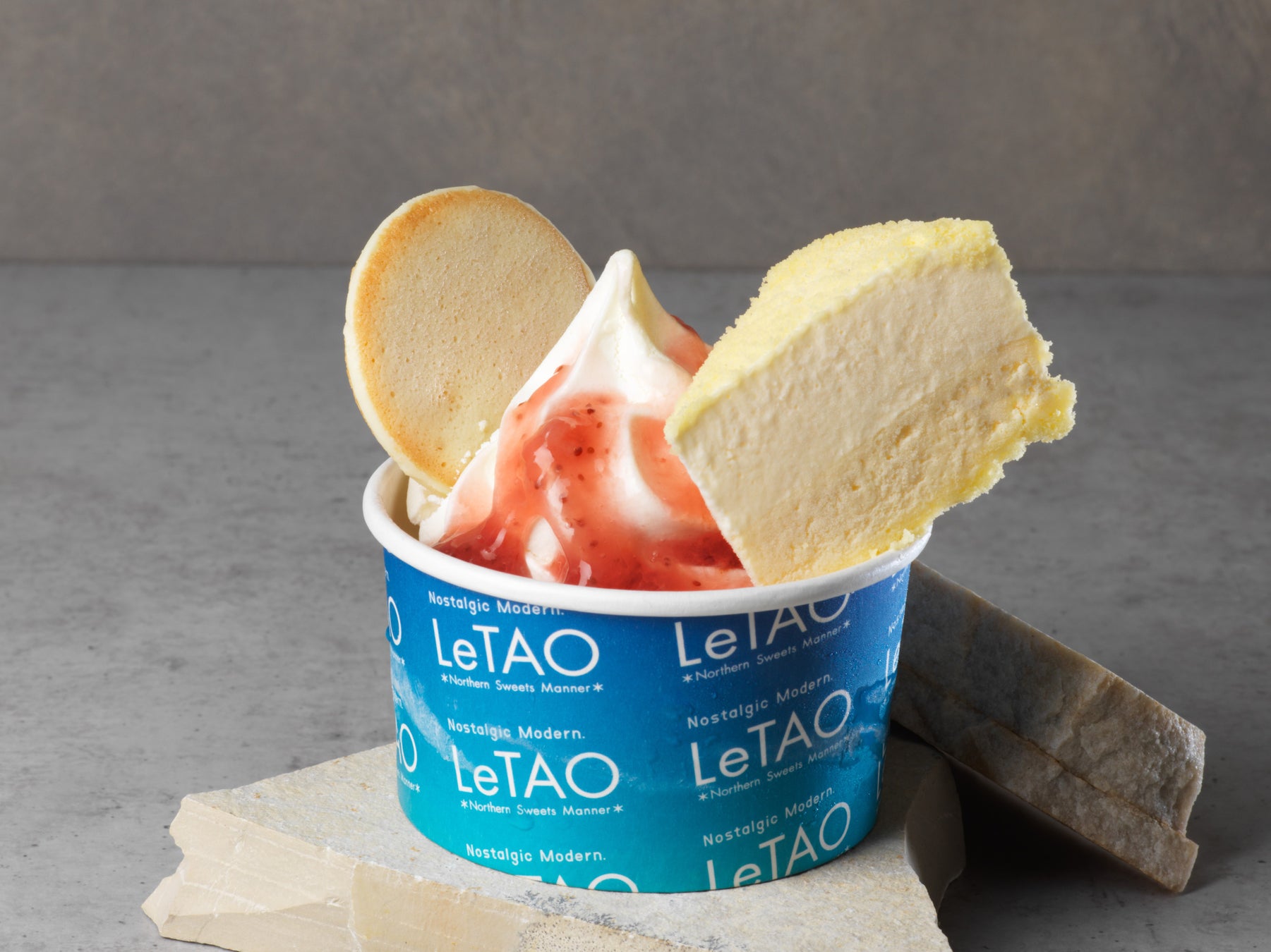 濃厚なジャージーミルクソフトクリーム、ミルキーなドゥーブルフロマージュ、チーズ香る小樽色内通りフロマージュを使用した、ルタオならではのパルフェです。北海道産苺の果肉入りソースをトッピング。ソフトクリームのコクととけあう苺の風味と甘酸っぱさが、後味にさわやかさを演出します。