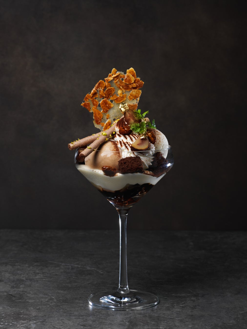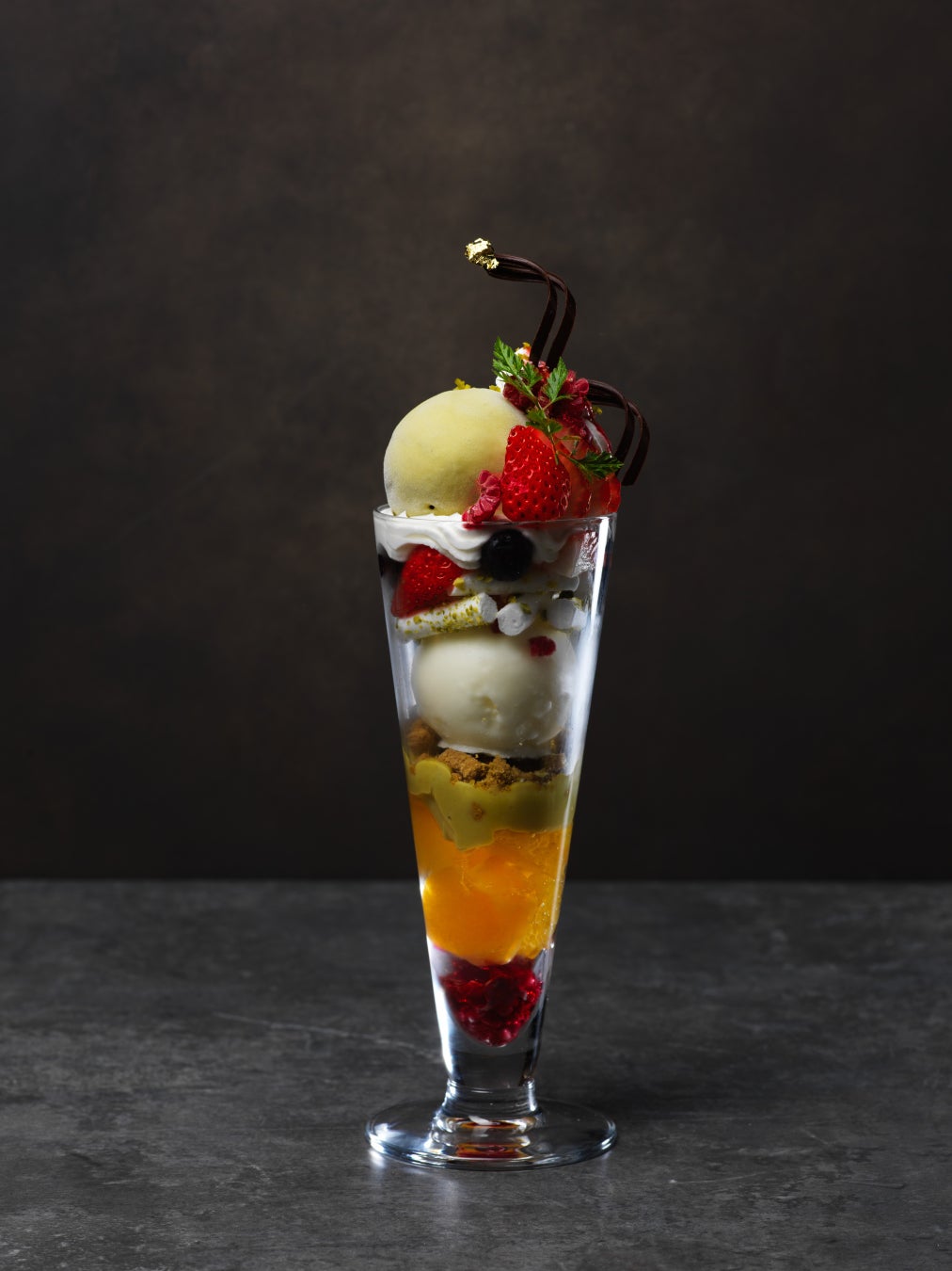 アイスやカスタード、メレンゲ、シュトロイゼル、刻みなど様々なところにピスタチオを使用し風味豊かに。コク深くミルキーな「ジャージーミルクアイス」を合わせ、フランボワーズ、蜂蜜 レモンジュレ、オレンジ、アプリコットで鮮やかさや味わいにも華やかさをプラスしました。ジャージーミルクとピスタチオが調和した贅沢な味わいの一品です。