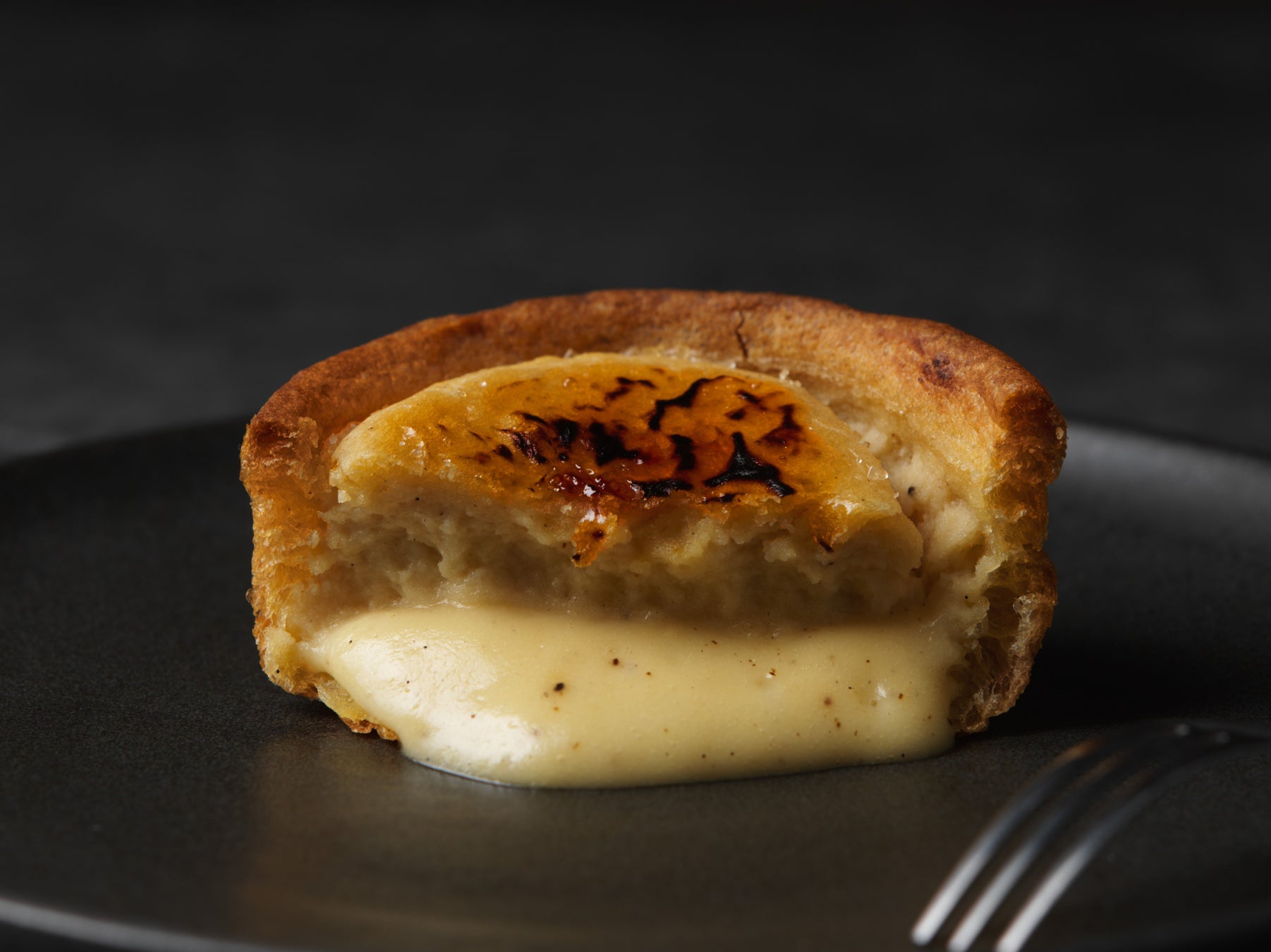 北海道産マスカルポーネチーズと酸味のあるクリームチーズにバニラを加えまろやかでコクのあるアパレイユをサクッとしたシュー生地に包み焼き上げました。バスクチーズケーキの濃厚さのある味わいです。ご自宅で再度焼き上げれば、中はとろとろで外側はサクッとした食感が楽しめます。