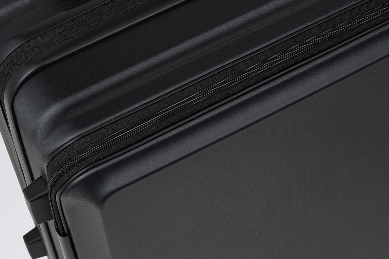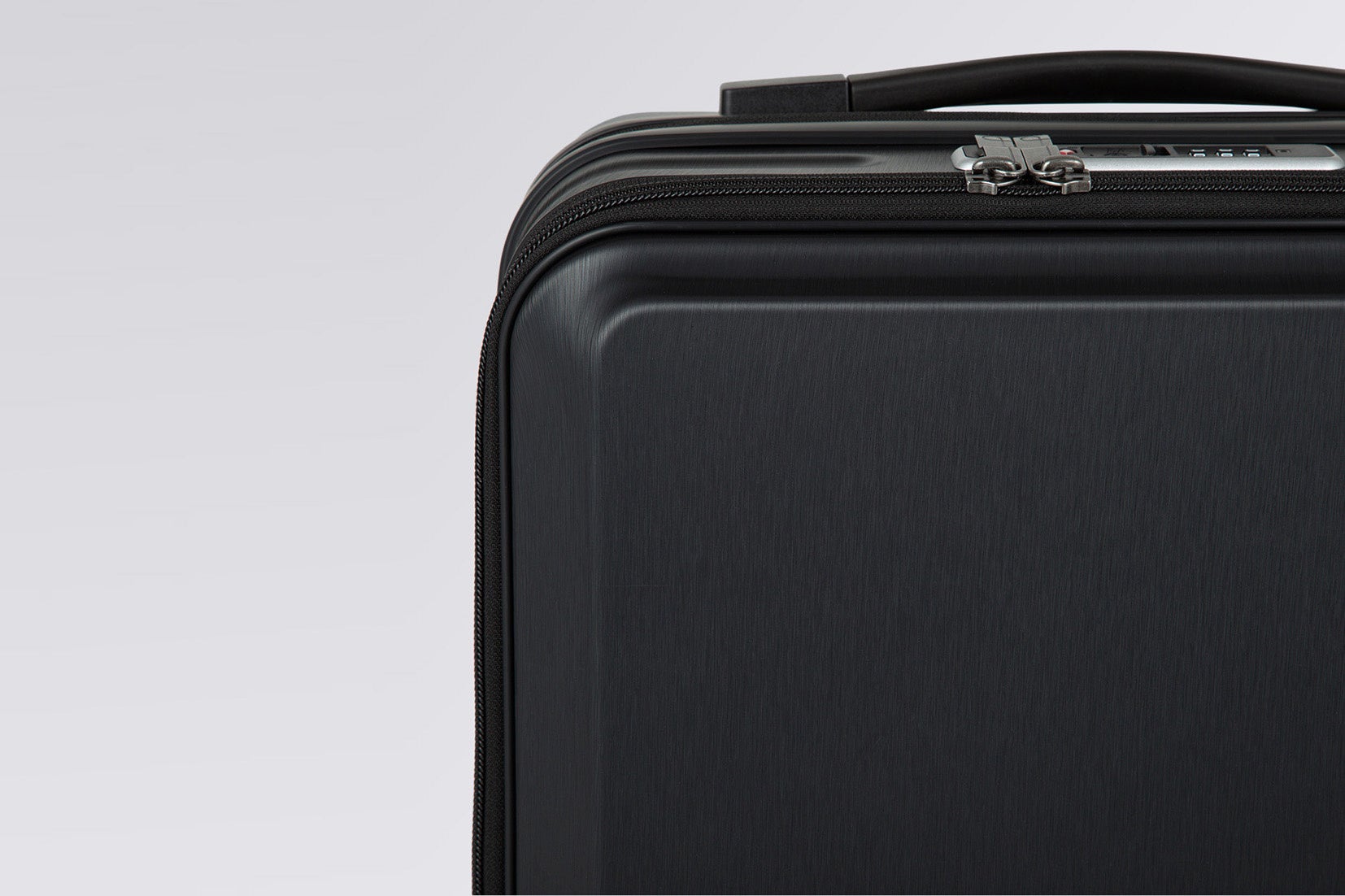 金属調のボディシェルがシャープで洗練された印象を与え、旅行はもちろんビジネスシーンにも馴染む上質な佇まいに仕上げました。