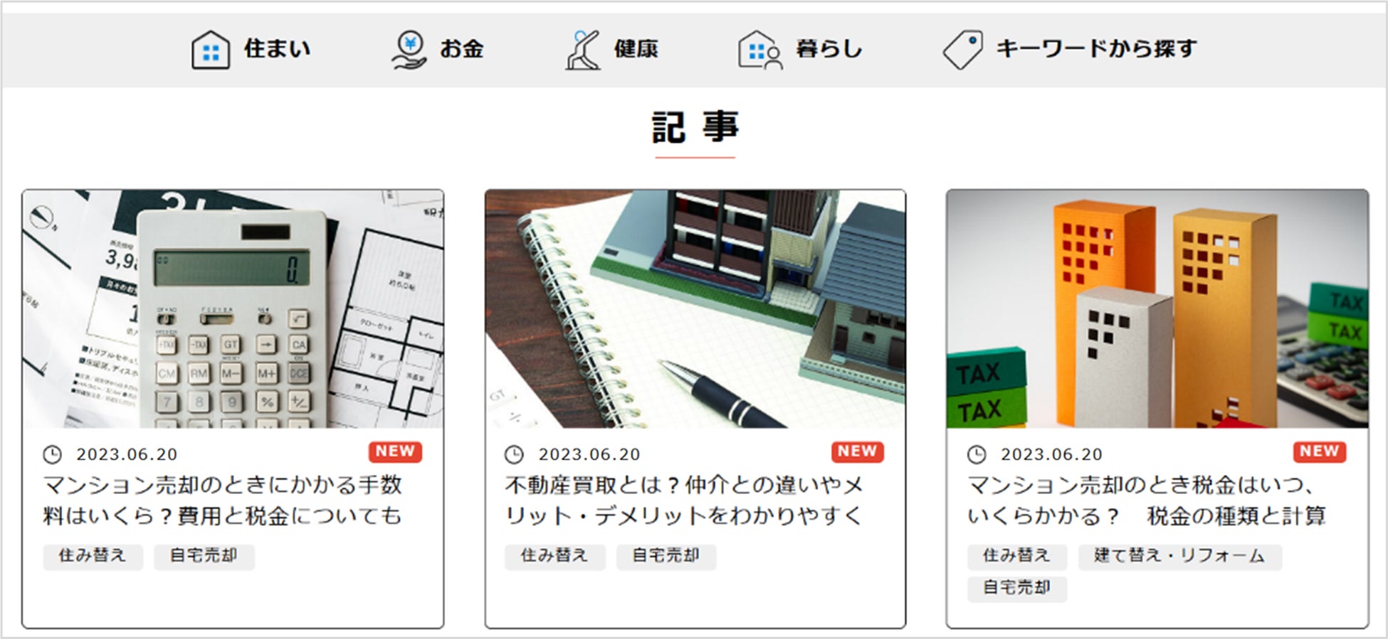 役立つ情報を4つのテーマ(住まい・お金・健康・暮らし)ごとにお届けします。