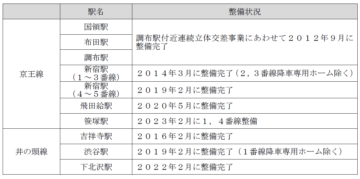 なお、今後は京王線・井の頭線全駅のホームドア設置に向けて検討を進めてまいります。