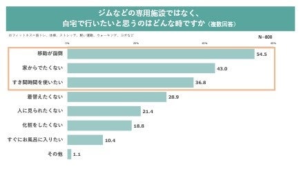 ■自宅でフィットネスを行いたいと思う理由の1位は「移動が面倒」、次いで「家から出たくない」「すき間時間を使いたい」