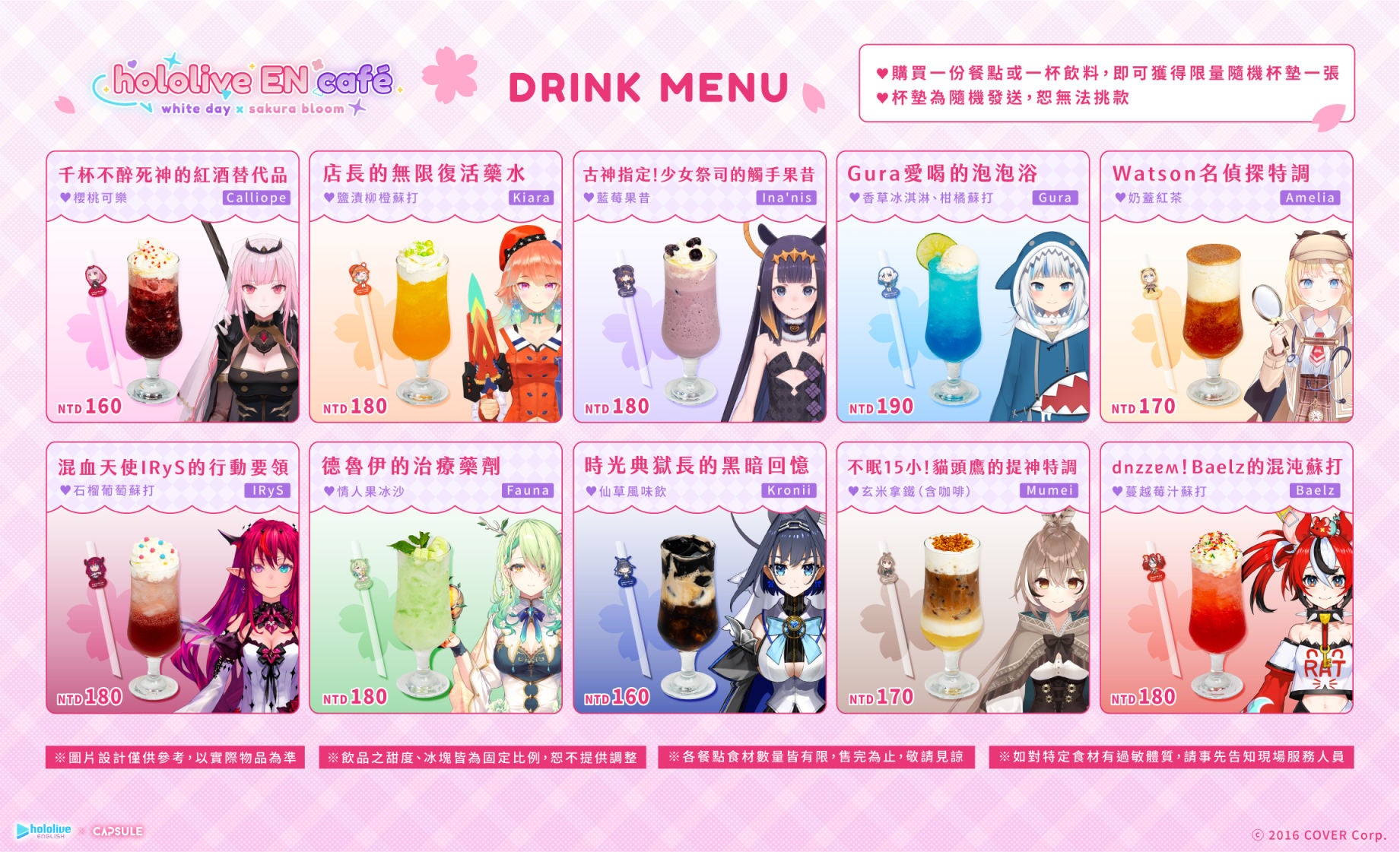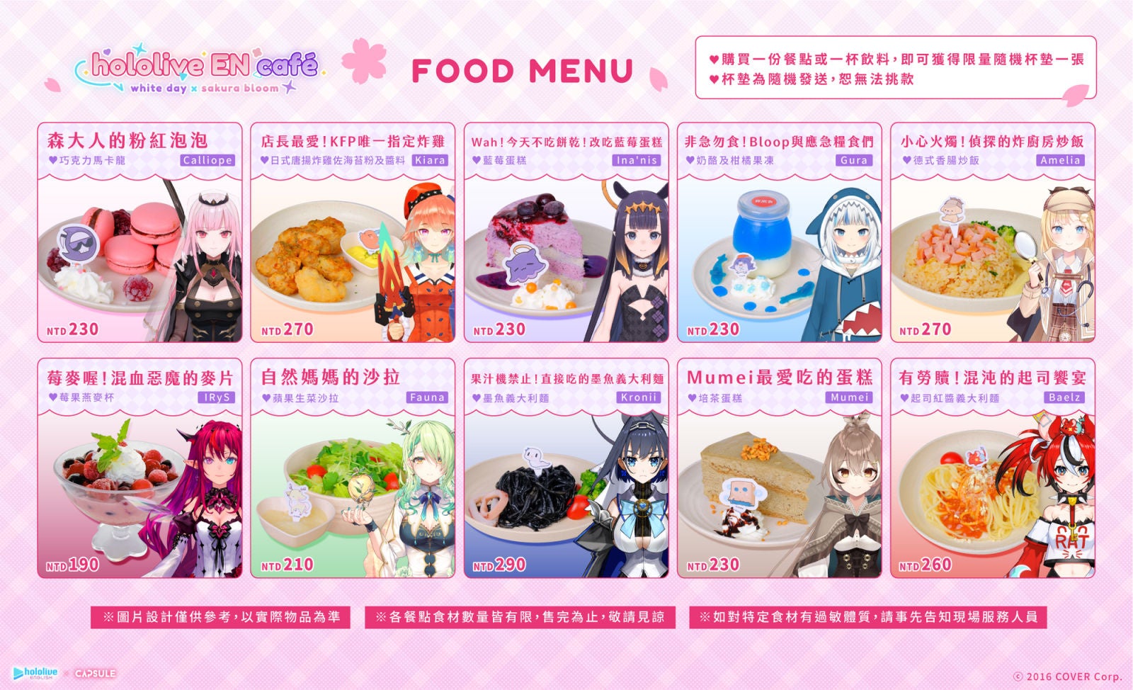 「ホロライブEnglish」と「CAPSULE」のコラボカフェが台湾にて3月10日(金)より開催