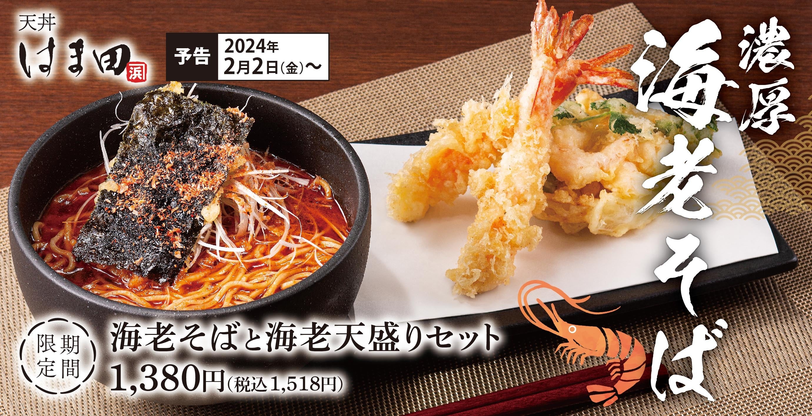 濃厚海老そばと海老天で至福のひとときを。2024年2月2日(金)より期間限定で販売開始