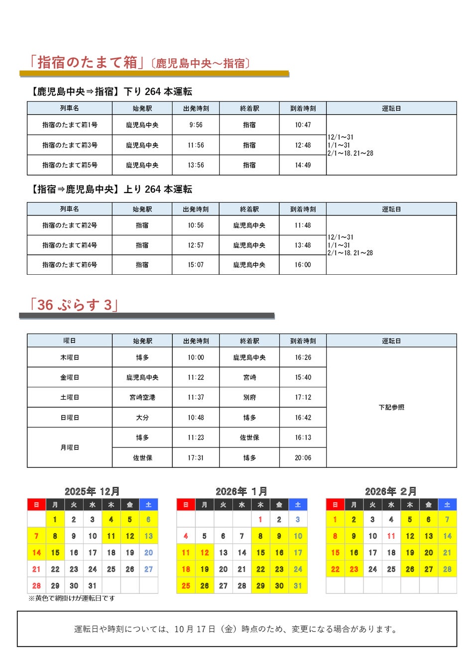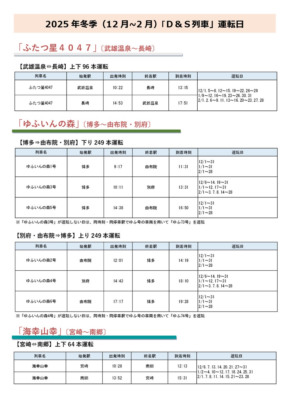 2025 年冬季(12 月~2 月)臨時列車運転計画とD&S 列車の運転日について~帰省や観光に便利な列車をご案内 この冬も九州の旅を快適に~